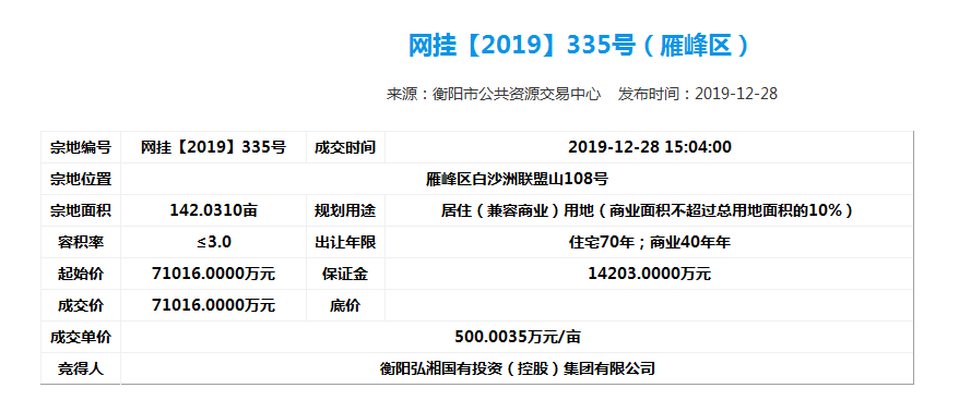 為了進一步做好市場化運行,弘湘國投以市場經營為主體,向資本市場進軍,進一步做實做強國有資產,增強自身活力。2019年12月28日下午,弘湘國投在市公共資源交易中心網站成功摘牌6宗共計523畝改制企業(yè)土地,摘牌總價超24億元,并于當日簽訂了《國有建設用地使用權公開出讓成交確認書》。2019年12月31日,弘湘國投與市自然資源和規(guī)劃局正式簽訂了《國有建設用地使用權出讓合同》。