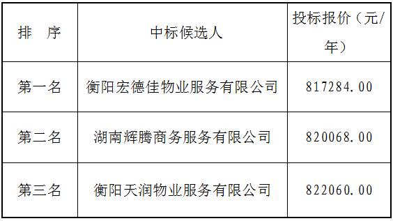 衡陽(yáng)弘湘國(guó)有投資(控股)集團(tuán)有限公司院內(nèi)物業(yè)服務(wù)采購(gòu)項(xiàng)目中標(biāo)候選人公示