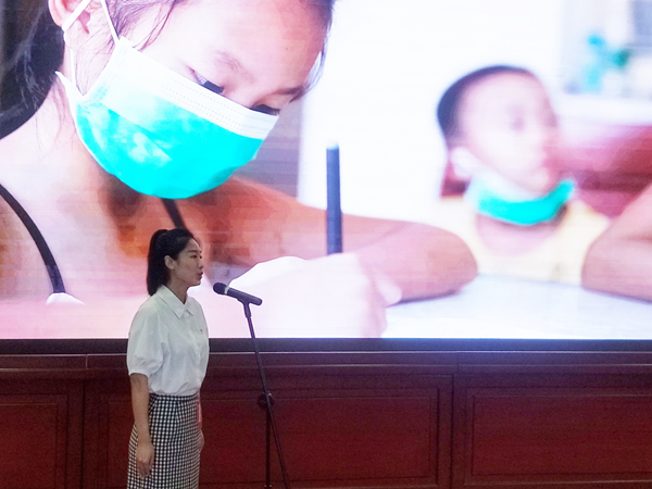 “這是一群無形而又特別的抗疫者,沒有請戰(zhàn)書,沒有紅手印,沒有被表彰,甚至連幾張抗疫的照片都沒有。但是他們的袋子里總懷揣著厚厚的清單,今天是658張”“ 新的路上,是團結(jié)一心、英勇無畏的抗疫精神,也是發(fā)展為上、民生為本的弘湘力量!”比賽現(xiàn)場,黃雅婷緊緊圍繞弘湘戰(zhàn)“疫”這一主題,講述了一個個發(fā)生在弘湘抗疫的感人故事。作為比賽第一位出場的她以真摯的情感、極富感染力的宣講方式以及自然樸實流暢的語言,將“第658份清單”的弘湘戰(zhàn)疫的故事聲情并茂地呈現(xiàn)在各位評委和觀眾面前,用真人、真事、真情表達弘湘人在抗疫戰(zhàn)斗中的不畏困難、勇于擔當,展現(xiàn)了弘湘集團全體黨員干部在疫情防控中團結(jié)一心,勇往直前的精神風貌。