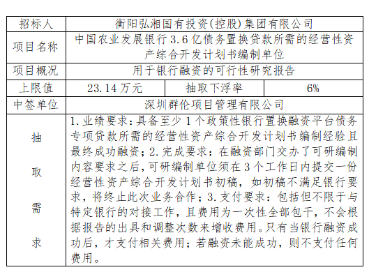 招 標(biāo) 人:衡陽弘湘國有投資(控股)集團有限公司