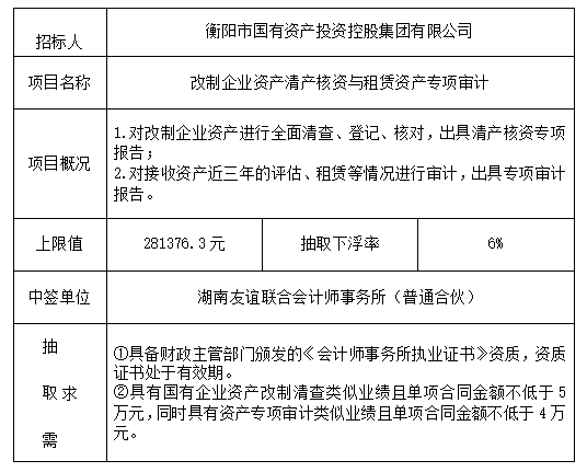 招標(biāo)人:衡陽市國(guó)有資產(chǎn)投資控股集團(tuán)有限公司